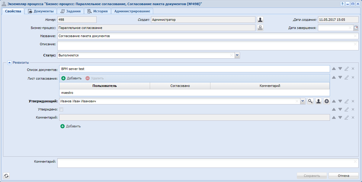 Отредактируйте остальные атрибуты экземпляра процесса аналогично тому, как они заполнялись при создании экземпляра процесса.