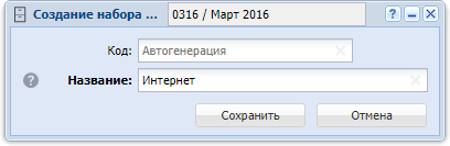 Код — введите код набора групп начислений или оставьте поле пустым для автогенерации кода.