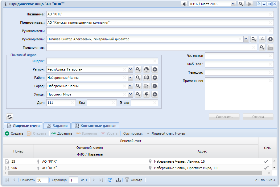 Редактирование юридического лица выполняется при помощи модуля, представленного на рисунке ниже.