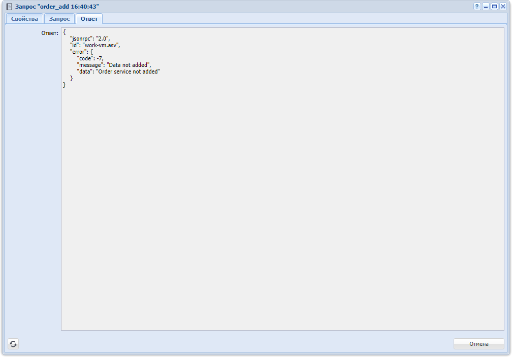 Просмотр запроса выполняется при помощи модуля, представленного на рисунках ниже. На вкладке «Свойства» отображаются все поля запроса, за исключением «Запрос» и «Ответ». Они отображаются на отдельных вкладках. Описание полей см. в разделе «Журнал запросов».